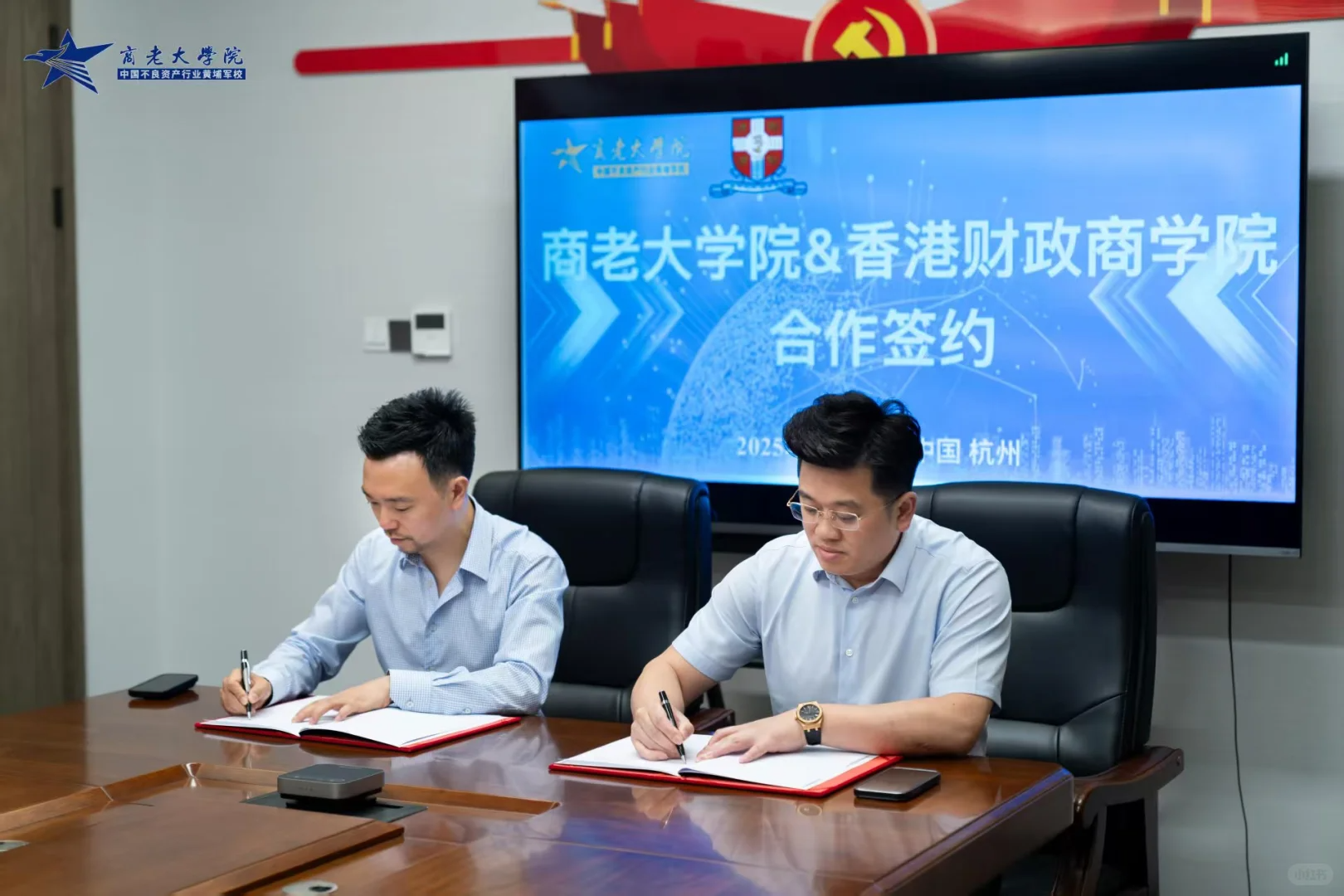 2025年初夏的杭州,香港财政商学院与浙江商老大学院正式签署战略协议。在浙江省不良资产处置管理协会等机构代表的见证下,双方为联合教学基地揭牌。鎏金沙倾泻间,“香港财政商学院杭州教学中心”金色牌匾亮相,宣告国际金融教育资源深度嵌入长三角经济腹地。