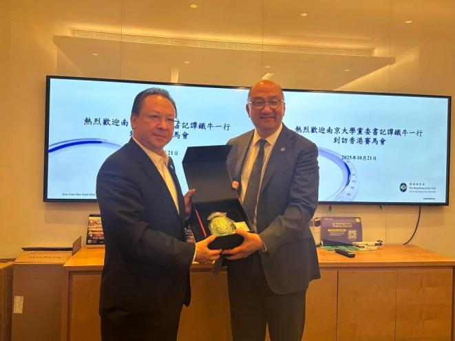 10月21日下午,谭铁牛书记专程率团拜访香港赛马会,与南京大学兼职教授、香港赛马会执行总监谭志源会谈。